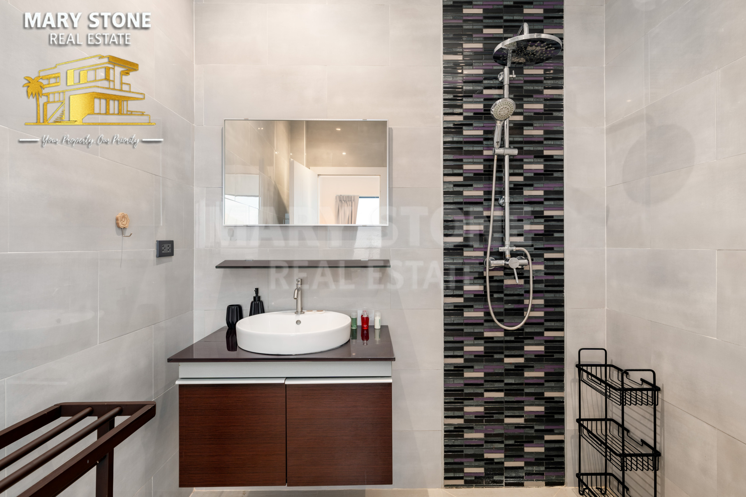 The villa boasts three well-appointed bedrooms, featuring two king-size beds and two individual beds, ensuring a restful night's sleep for up to 6 guests. The accommodation includes three bathrooms - two with showers, one with a bathtub, and an additional toilet - providing ample space and convenience for all occupants.