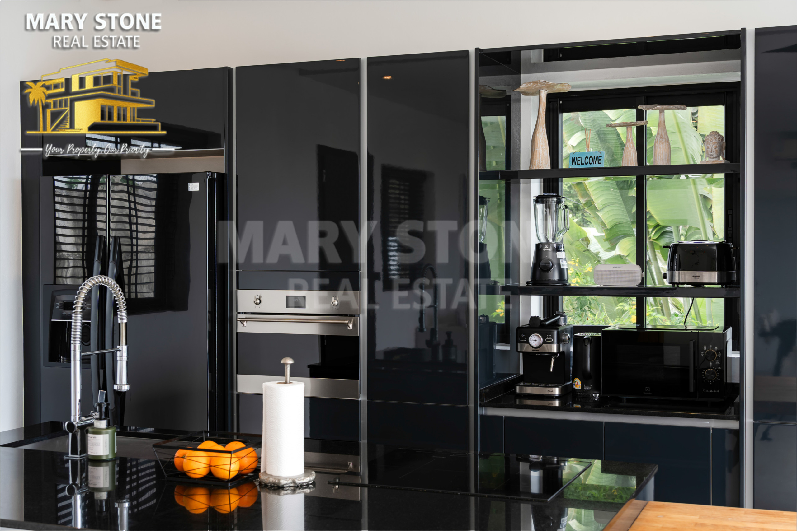 Outdoor enthusiasts will love the private swimming pool, perfect for cooling off in the tropical heat. The villa offers additional outdoor features like a balcony, garden furniture, outdoor dining area, and sun loungers, allowing you to soak up the beautiful surroundings.