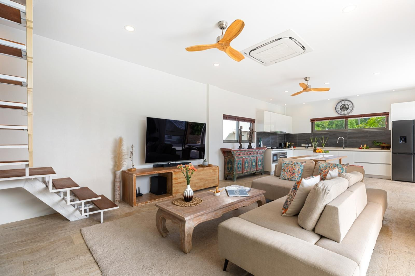 The villa boasts three generously sized king-size bedrooms, ensuring everyone has a comfortable space to relax. With three well-appointed bathrooms - two featuring modern showers and one with a luxurious bathtub - there's ample room for everyone to prepare for the day's adventures. Listen to the sound of birds, and enjoy watching the weather changing from your sunset lounge and wait for the stars and moon, right next to the master bedroom, breathe and unwind!