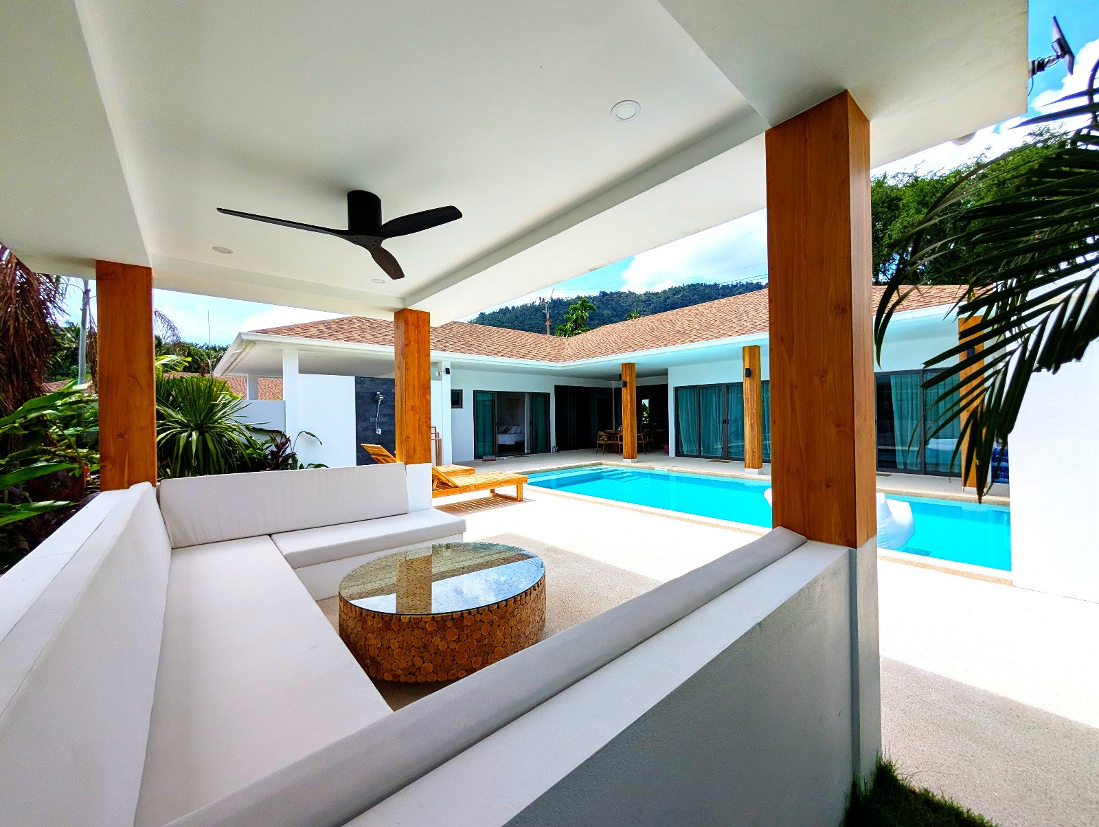 The villa in Ko Samui has 2 bedrooms and has capacity for 4 people. The villa is 17 m². The accommodation is equipped with the following items: internet (Wi-Fi), air-conditioned, 6 fans, 3 TVs. In the induction open plan kitchen, refrigerator, microwave, oven, freezer, dishwasher, kitchen utensils and toaster are provided.