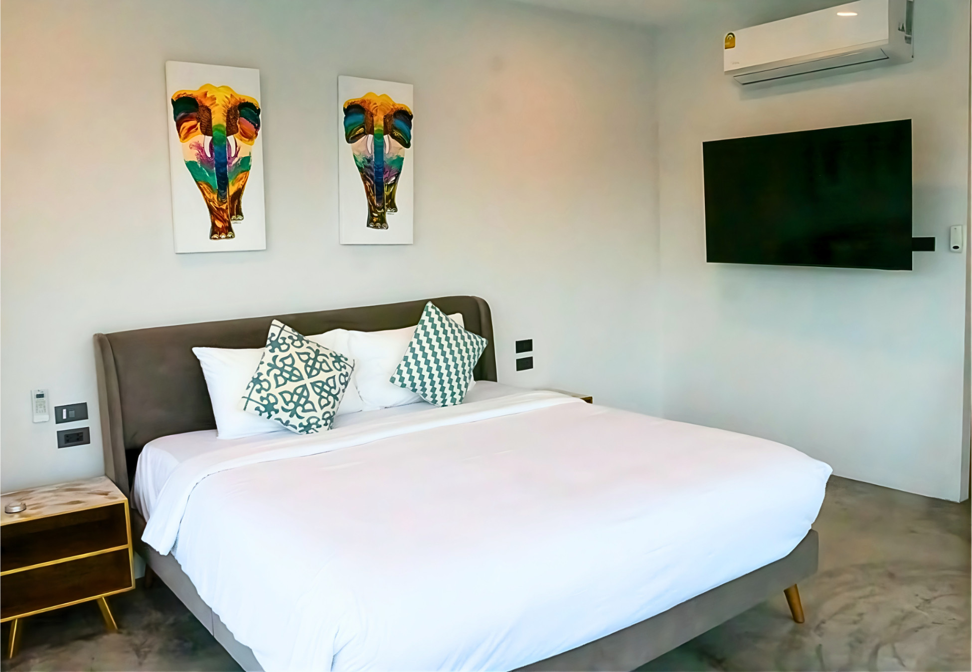★ Villa terrace area, you would enjoy with outside area which comes which private pool, dining table, sun-sofa and jacuzzi option and inside area which come with living sofa area, mini bar, full equipped kitchen. Bathtub will appear in Master bathroom. Smart Television will be hanged in the corner of each bedroom and living room. There is sound system which can be able to make sound indoor and outdoor speaker. The curtain is electrical controlling with remote.