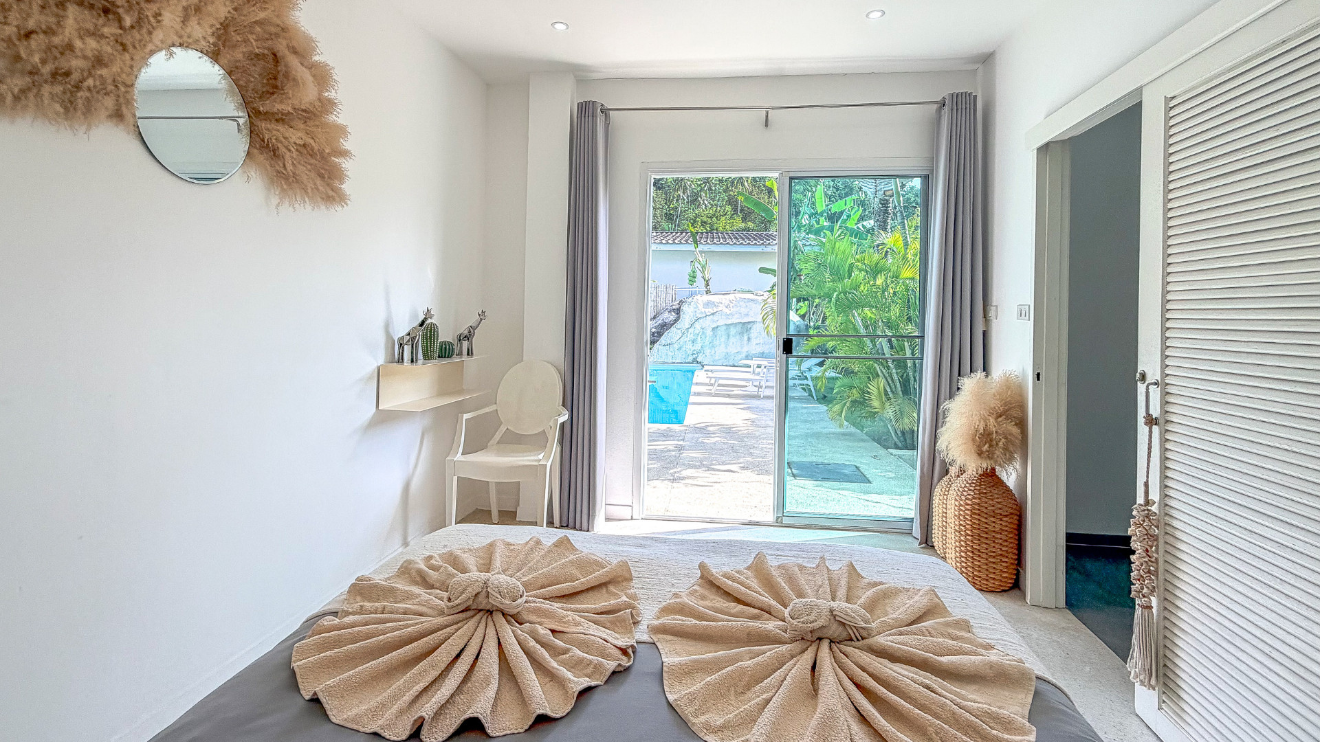The villa in Ko Samui has 3 bedrooms and has capacity for 6 people. The villa is 160 m². The accommodation is equipped with the following items: garden, garden furniture, terrace, washing machine, barbecue, iron, internet (Wi-Fi), hair dryer, air-conditioned, private swimming pool, garage near the building, mosquito net/nets in the bedroom, TV. In the gas open plan kitchen, refrigerator, microwave, oven, freezer, dishes/cutlery, kitchen utensils and kettle are provided.