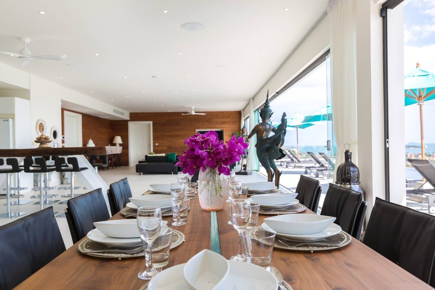 ★ Villa Thaïlandaise Moderne et Luxueuse de 4 Chambres avec Vues Spectaculaires. Découvrez l'apogée de l'élégance dans cette villa exquise de 4 chambres, conçue dans un style thaïlandais moderne contemporain. Profitez de vues mer à couper le souffle et de panoramas insulaires, avec une piscine privée et un espace Sala, parfait pour admirer les couchers de soleil. Expérimentez l'observation des avions à l'atterrissage sans la gêne du bruit. Enceintes intérieures/extérieures parfaitement intégrées, idéales pour le divertissement. Détendez-vous dans la salle de spa ou profitez de la salle de jeux avec un billard et un baby-foot.