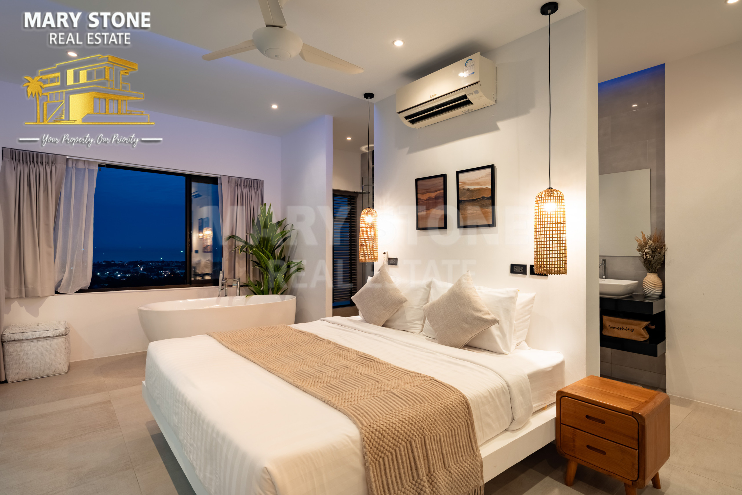 ★ Villa Élégante de 3 Chambres à Chaweng avec Vue Mer Spectaculaire. Parfaite pour un petit groupe d'amis ou une famille. Profitez d'une vue mer à couper le souffle et d'une piscine privée avec une vue sereine sur l'île. La villa dispose d'une douche extérieure pour une expérience rafraîchissante. Immergez-vous dans la tranquillité et le confort de cette charmante retraite.