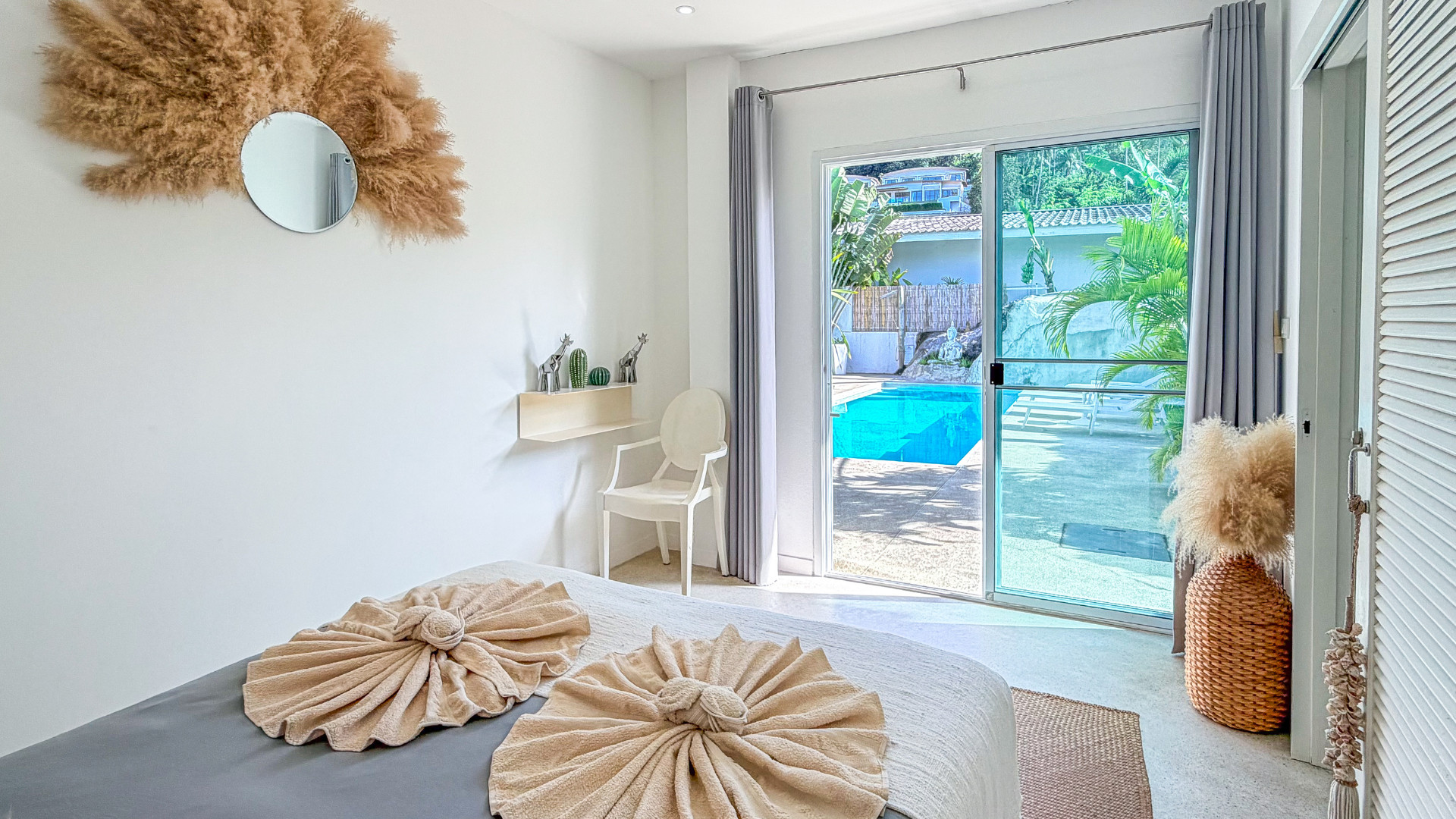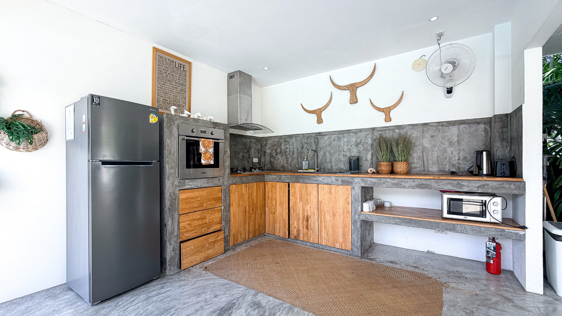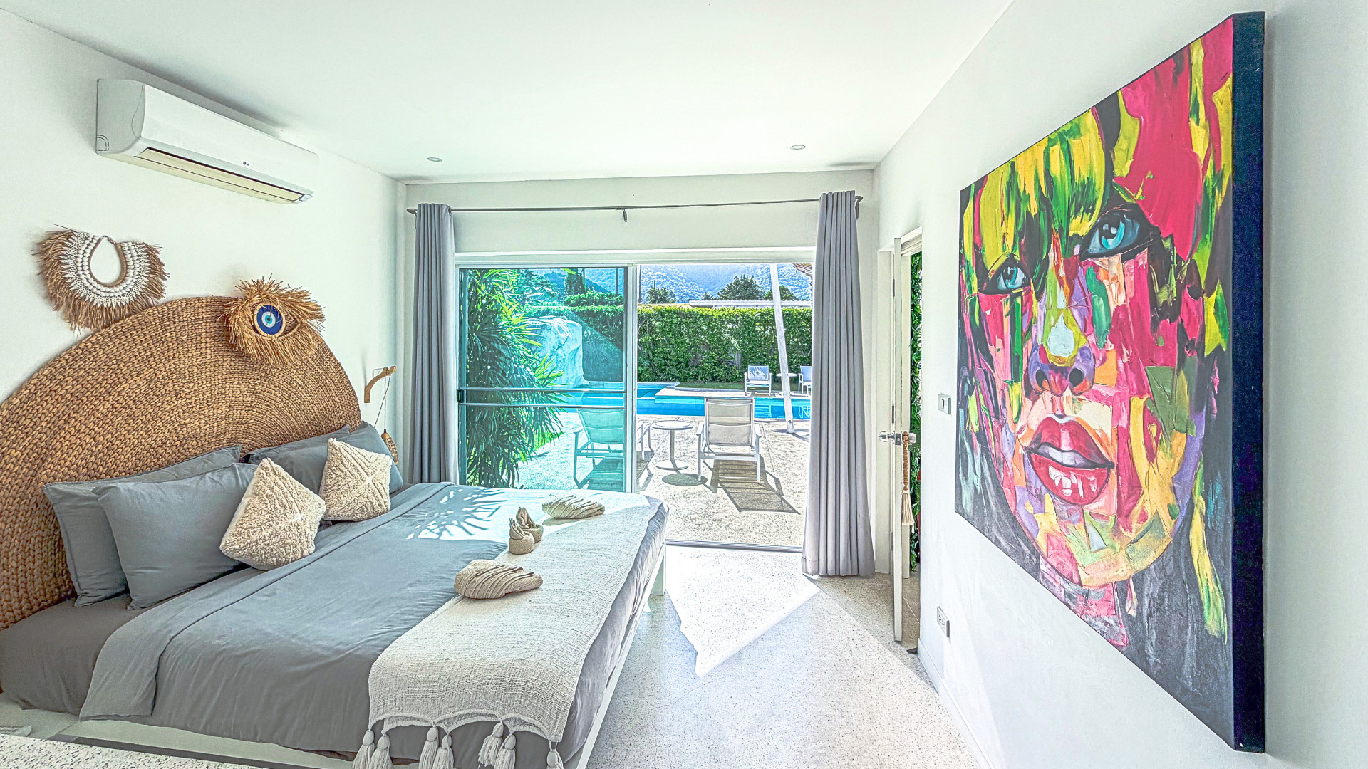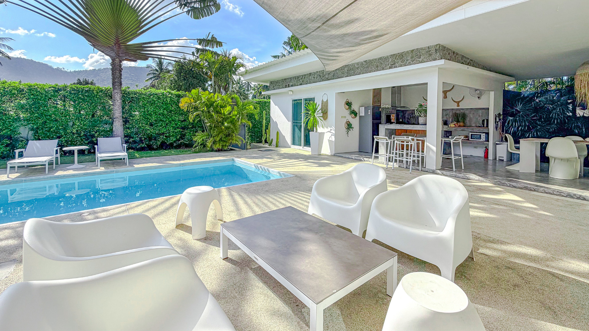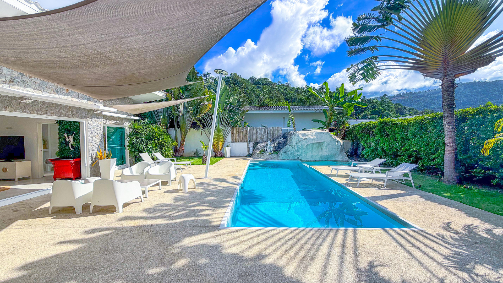 Villa à Ko Samui qui possède 3 chambre(s) et Capacité pour 6 personnes. Logement de 160 m². Elle dispose de jardin, mobilier de jardin, terrasse, lave-linge, barbecue, fer à repasser, accès internet (wifi), sèche-cheveux, climatisation, piscine privée, garage bâtiment proche, moustiquaires dans la chambre, TV. La cuisine américaine, à gaz, est équipée avec réfrigérateur, micro-ondes, four, congélateur, vaisselle/couverts, ustensiles/cuisine et bouilloire.