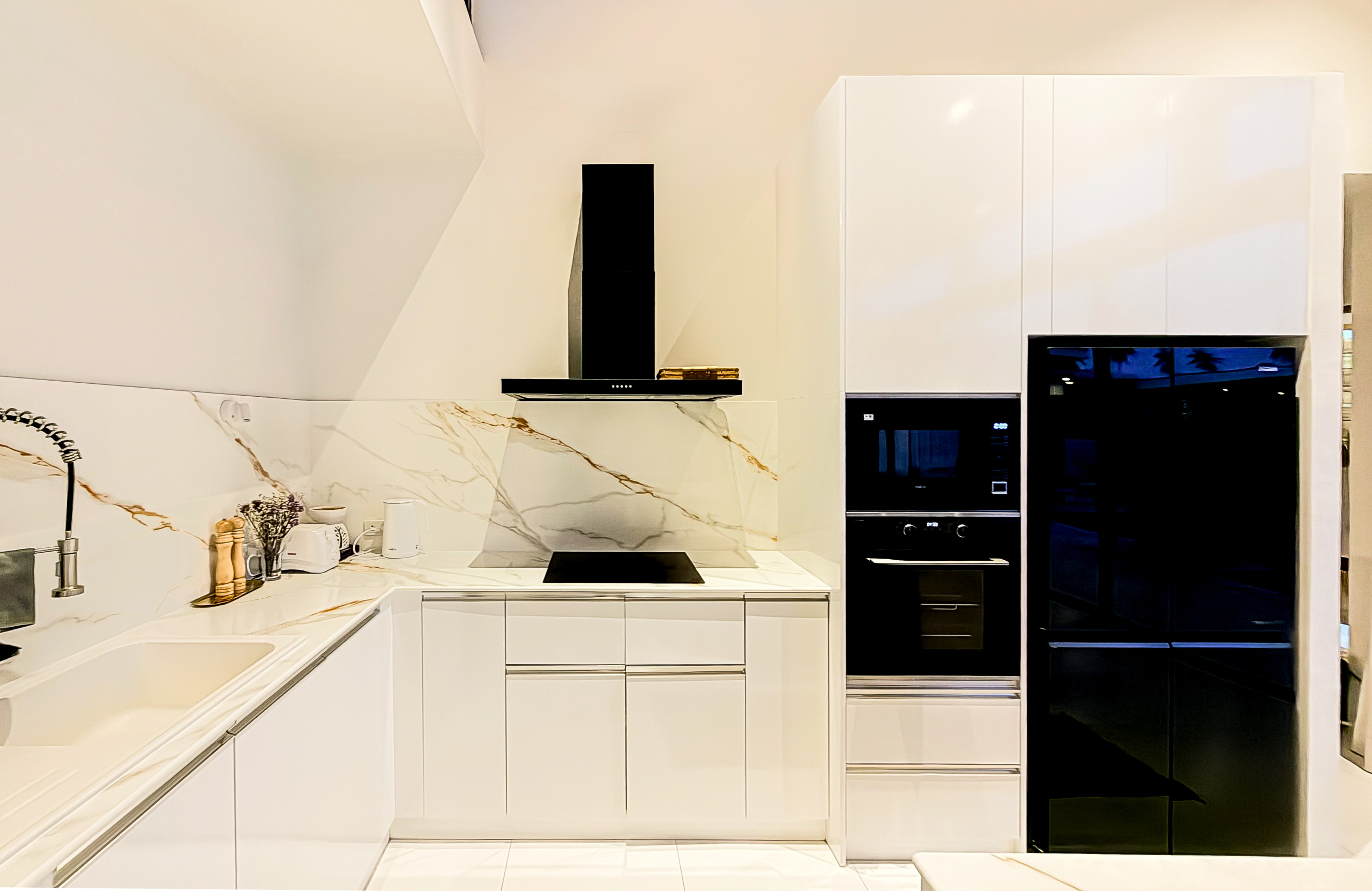 La villa spacieuse dispose de trois chambres avec lits king-size et de quatre salles de bains bien aménagées, dont trois avec douches et une avec une baignoire luxueuse. La cuisine de style américain est entièrement équipée d'appareils de première qualité, comprenant un réfrigérateur, un congélateur, une machine à café, un four, un lave-vaisselle, un micro-ondes, un grille-pain et une bouilloire, vous permettant de préparer des repas délicieux pendant votre séjour.