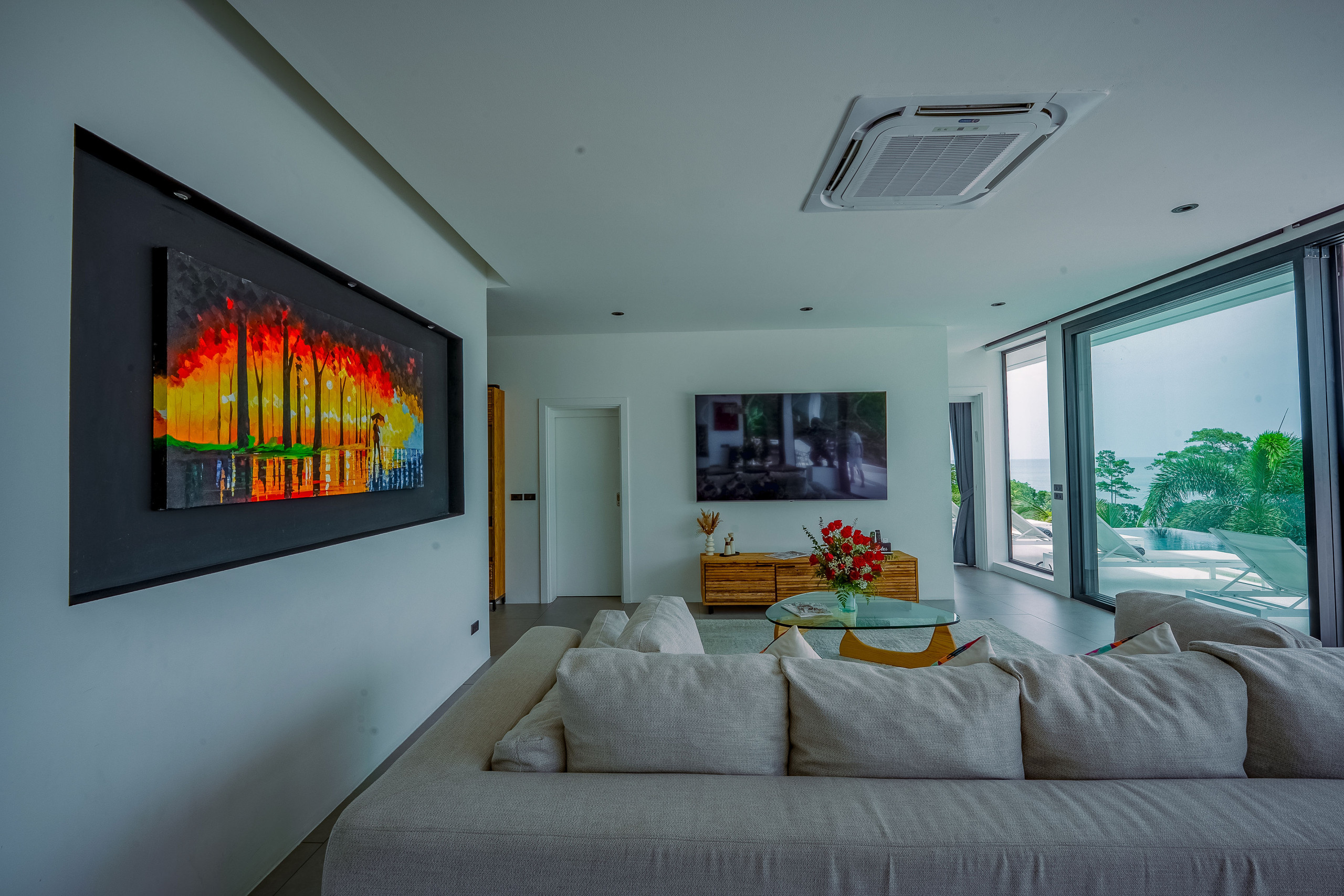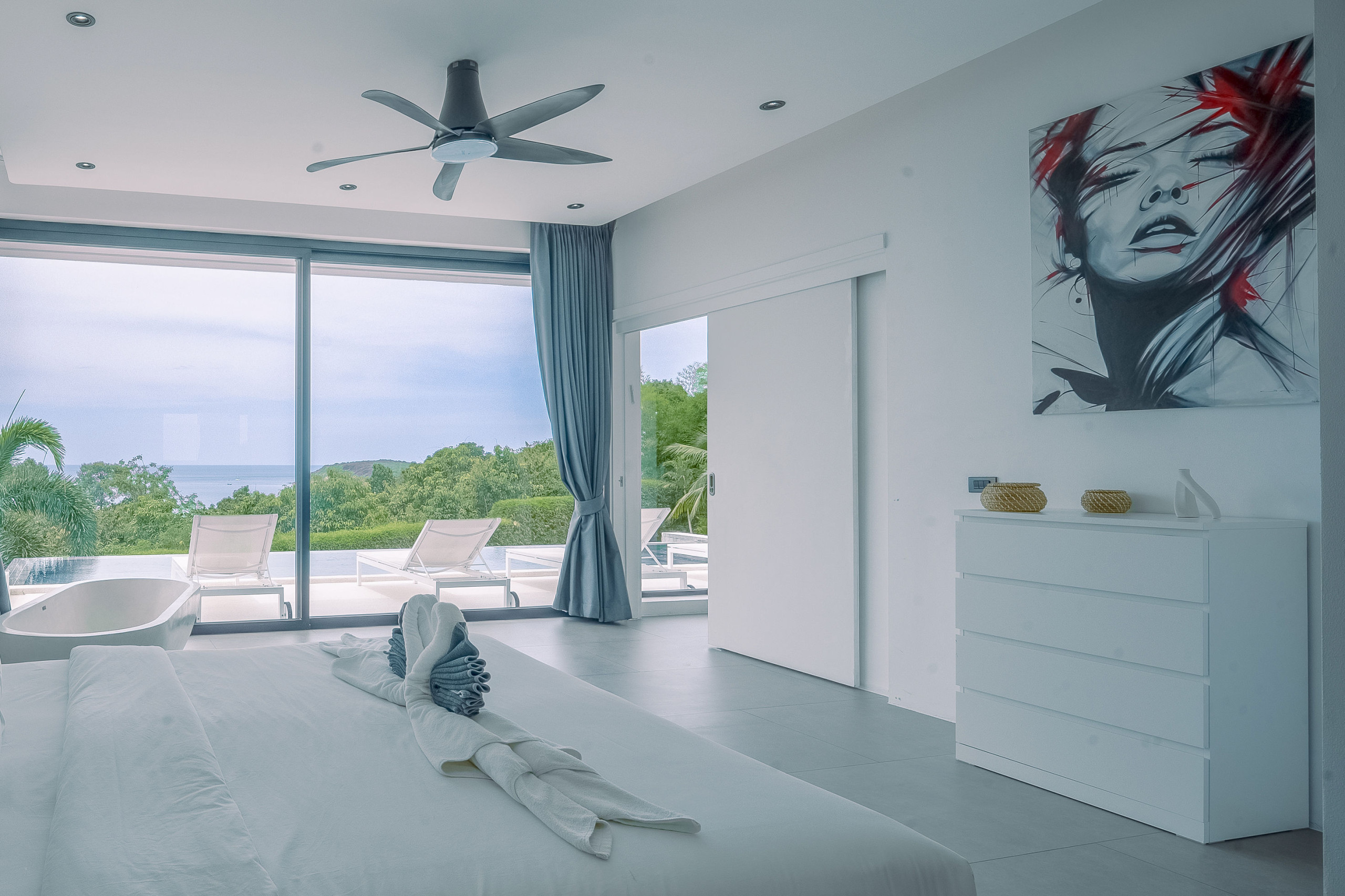 вилла в Ko Samui 6 количество спален вместимостью на 12 чел. Проживание из 600 кв.м меблировано со вкусом и современный, с видом на море и сад. Находится в 500 м от песчаного пляжа "Choenmong", в 500 м До ресторана "Choenmong", в 500 м ? ?? ???? "Choenmong", в 1 km от галечного пляжа "Chawenng Beach", в 1 km от города "Choenmong", в 1 km от супермаркета "7/11 shop", в 3 km от аэропорта "Samui Airport", в 3 km от аэропорта "Samui Airport", в 5 km ? ?? ???????? "Bangkok Hospital", в 8 km от поля для гольфа "Santibury Maenam", в 8 km от аквапарка "Maenam" и расположено в жилой зоне и рядом с торговыми центрами и ресторанами. Размещение имеет зеленая зона, сад, oгороженный участок, 150 кв.м террасы, стиральная машина, сушилкой для белья, Барбекю, утюг, сейф, Доступ в интернет (wi-fi), Фен, Балкон, Тренажерный зал, кондиционер, бассейн собственный бассейн, Открытая парковка в этом же здании, 1 телевизор. Кухня, совмещенная с залом, оснащена электрической плитой, оборудовано холодильник, микроволновая печь, духовка, морозильная камера, столовые приборы, кухонная утварь, кофеварка, фритюрницей, тостер и Чайник.