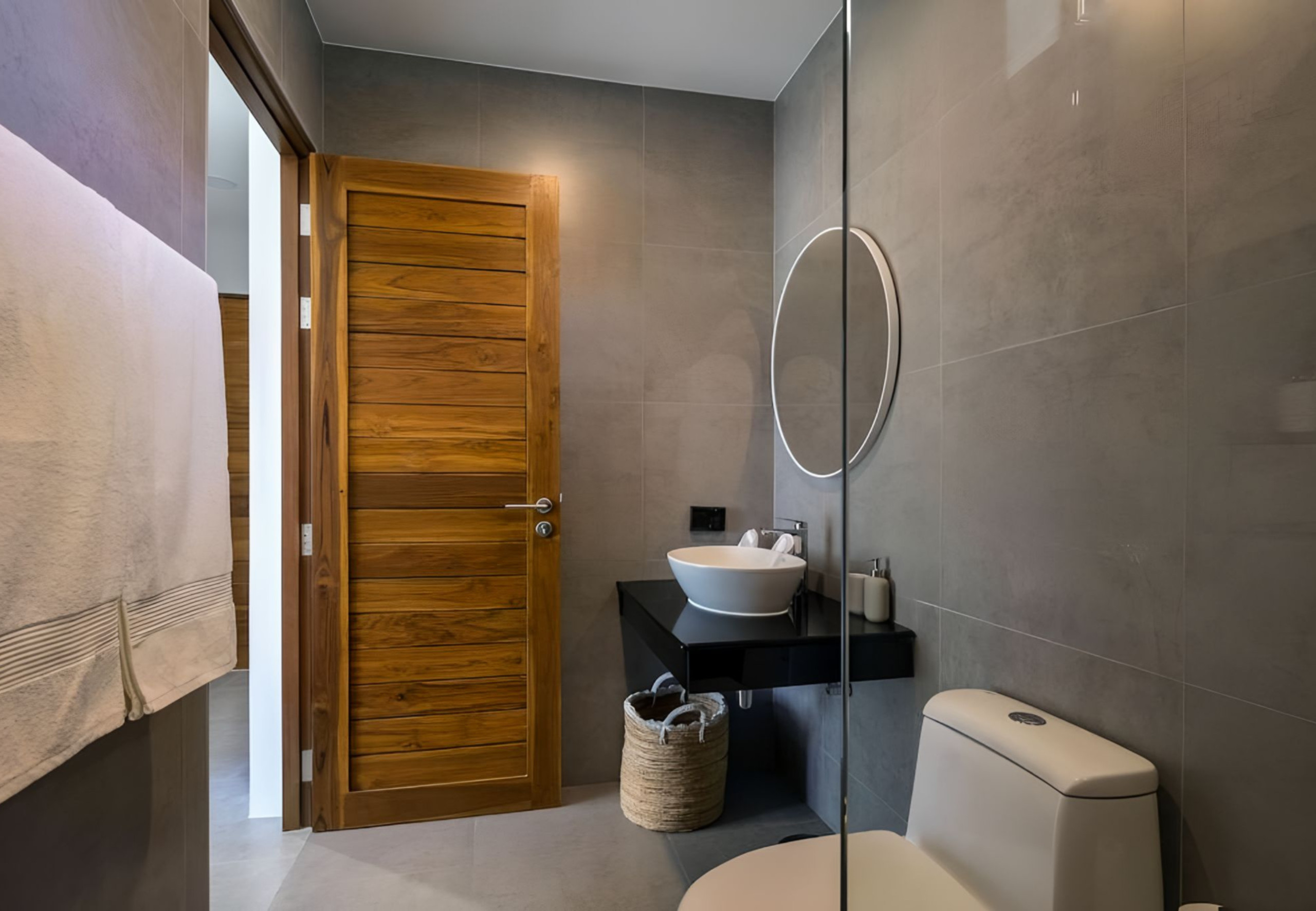 The villa features three well-appointed bedrooms with a mix of king-size and individual beds, providing flexible sleeping arrangements for families or groups. You'll enjoy the convenience of three bathrooms - two with showers and one with a bathtub - making morning routines and evening relaxation a breeze.
