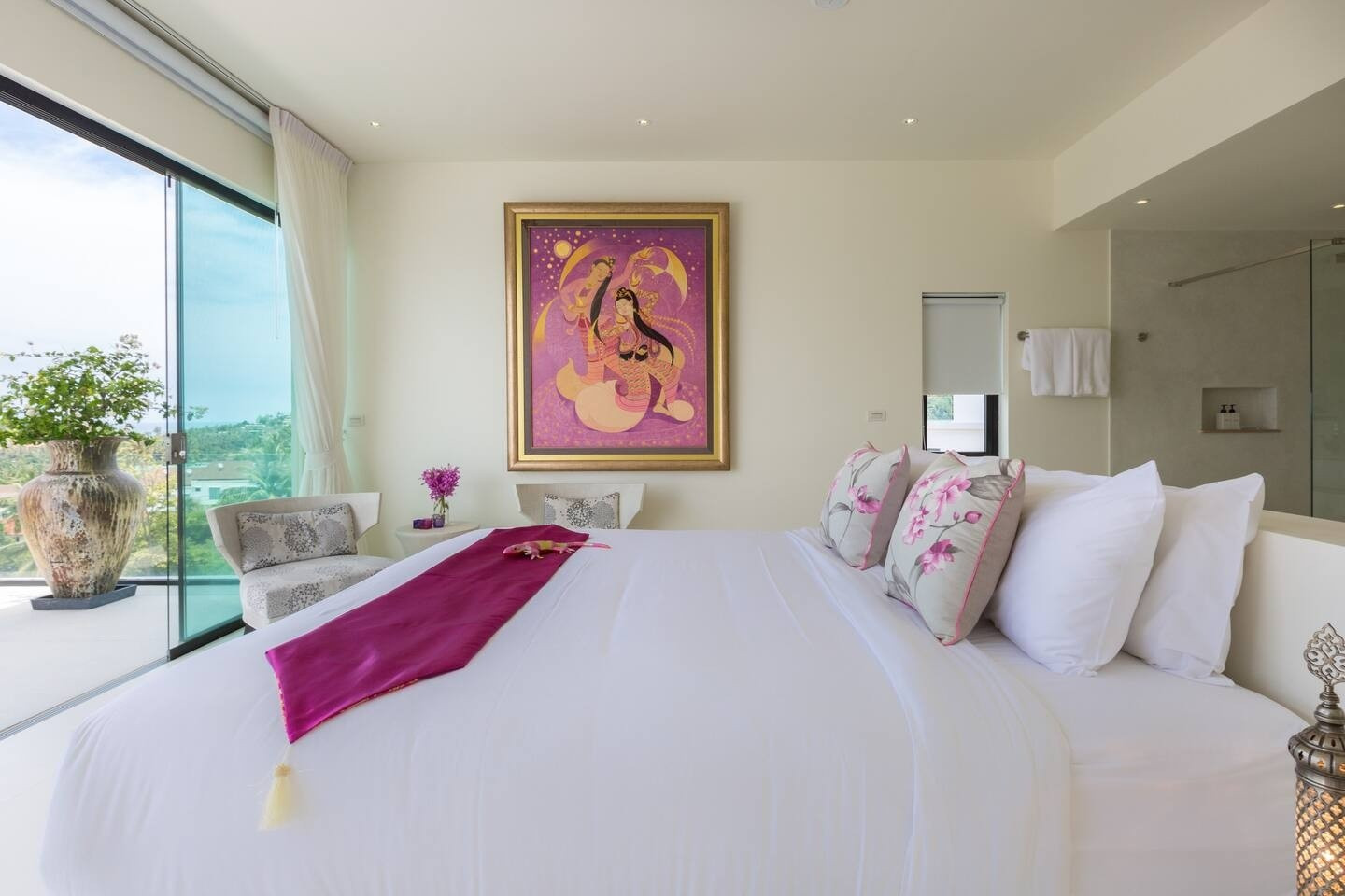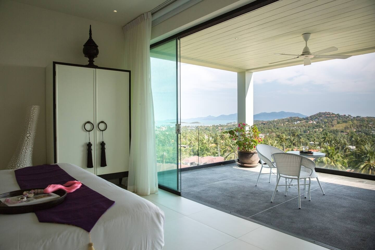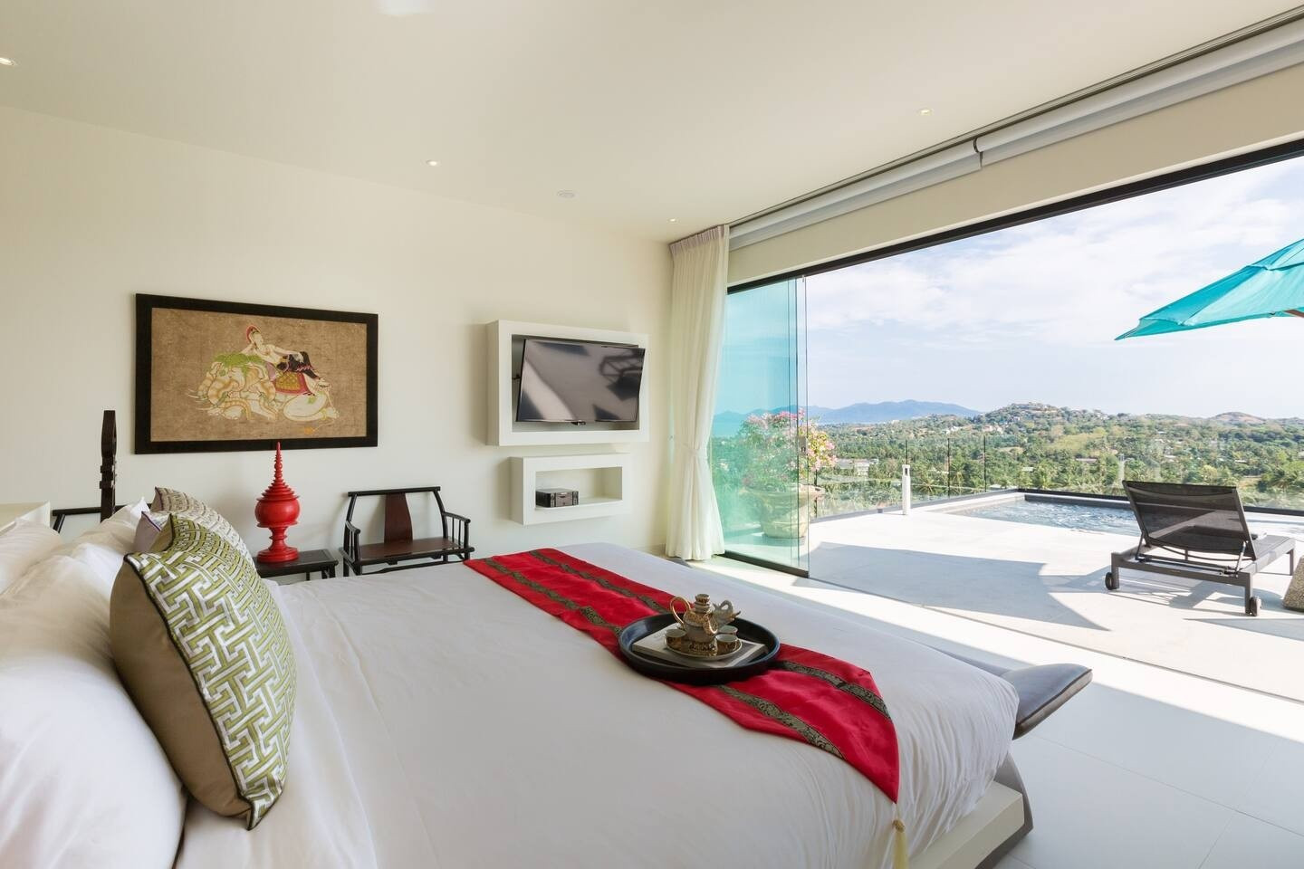 ★ Luxurious 4-Bedroom Thai Modern Villa with Stunning Views. Discover the epitome of elegance in this exquisite 4-bedroom villa, designed in contemporary Thai modern style. Bask in breathtaking sea-views and island vistas, private pool and Sala seating area, perfect for enjoying sunsets. Experience watching planes land without the disturbance of noise. Seamless in/outdoor speakers, ideal for entertaining. Unwind in the spa room or enjoy the playroom with a pool table and football board.