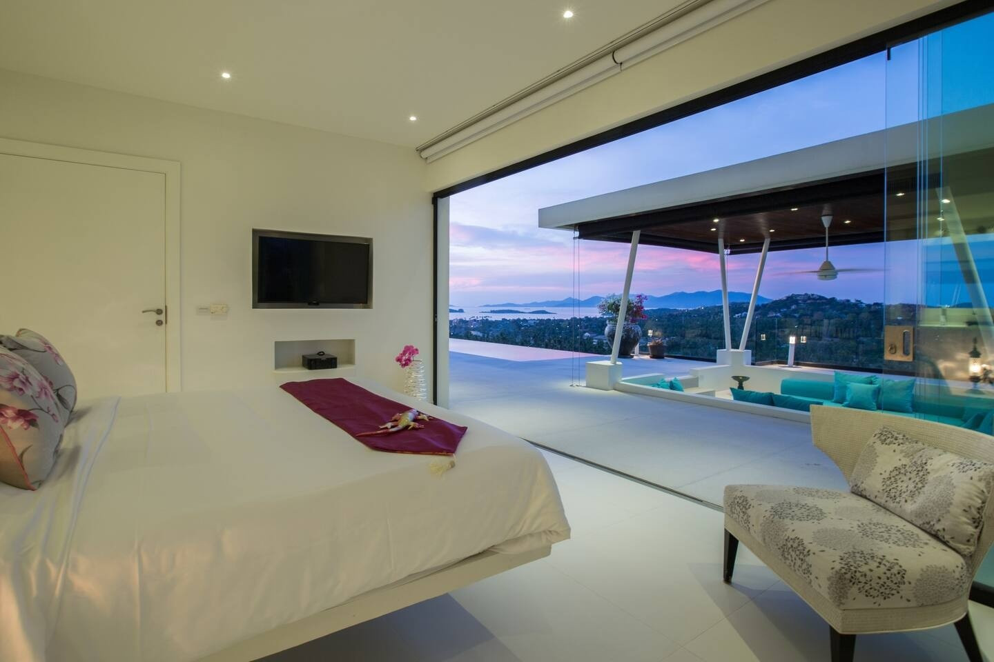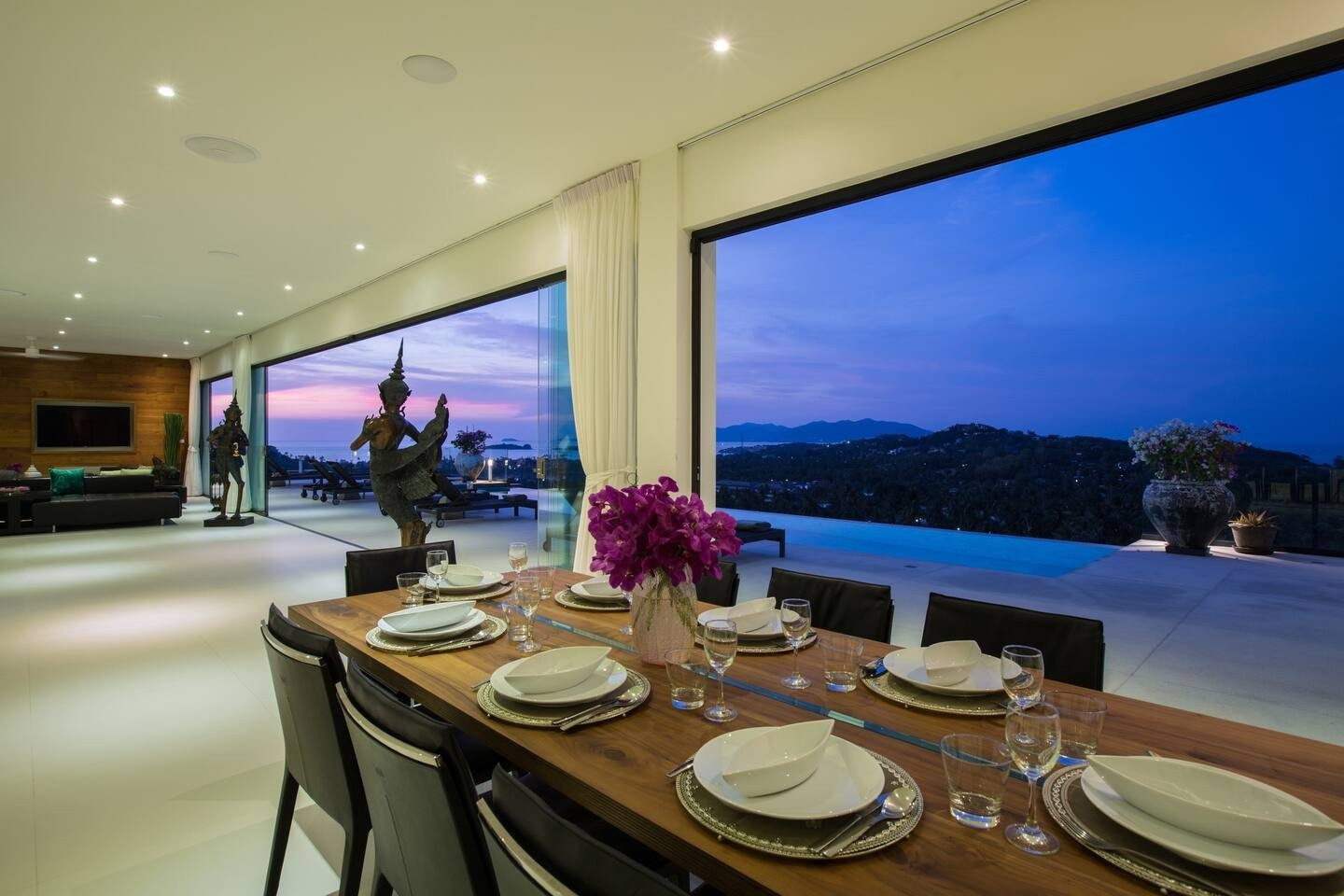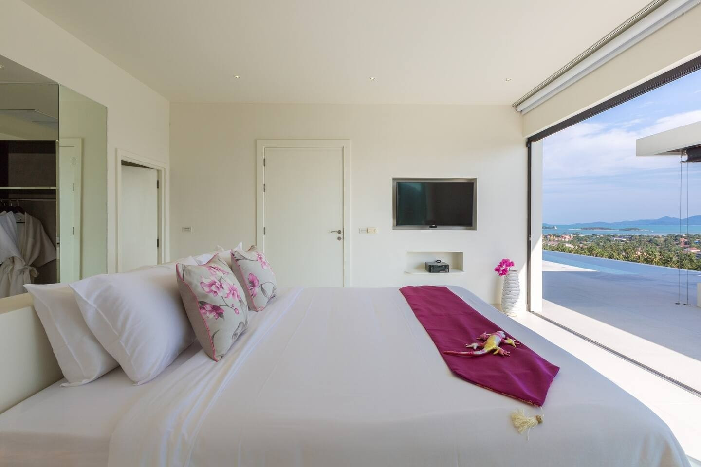 ★ Luxurious 4-Bedroom Thai Modern Villa with Stunning Views. Discover the epitome of elegance in this exquisite 4-bedroom villa, designed in contemporary Thai modern style. Bask in breathtaking sea-views and island vistas, private pool and Sala seating area, perfect for enjoying sunsets. Experience watching planes land without the disturbance of noise. Seamless in/outdoor speakers, ideal for entertaining. Unwind in the spa room or enjoy the playroom with a pool table and football board.