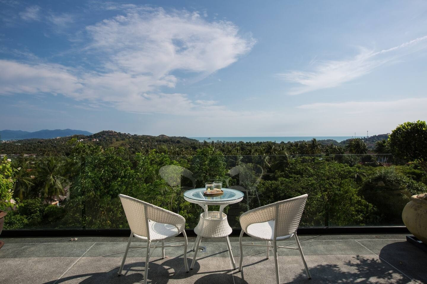 ★ This villa is located in the Choeng Mon – Plai Leam area. From the villa's terrace viewpoint, you can see the island view and the sea. It is a peaceful place for a private journey or a private celebration for a group of family or friends. There is a free parking area at the top of the entrance and below the second entrance. The building has 2 floors connected to each other by stairs. The front entrance has a security camera for guests inside.