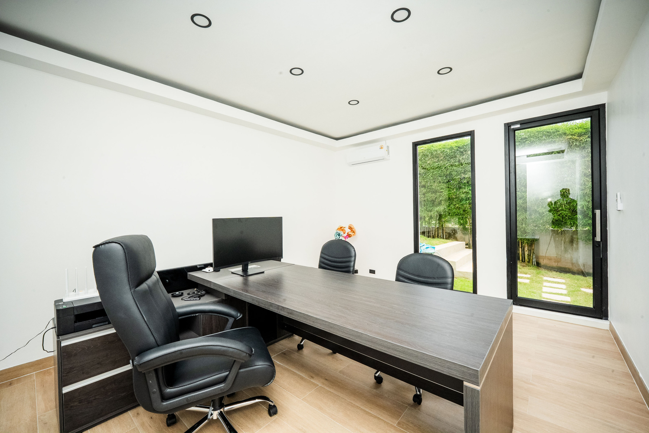 A dedicated home cinema room provides a cozy and immersive experience for movie nights. For those who enjoy staying active, the fitness room is fully equipped for a complete workout routine in a cool and airy environment.