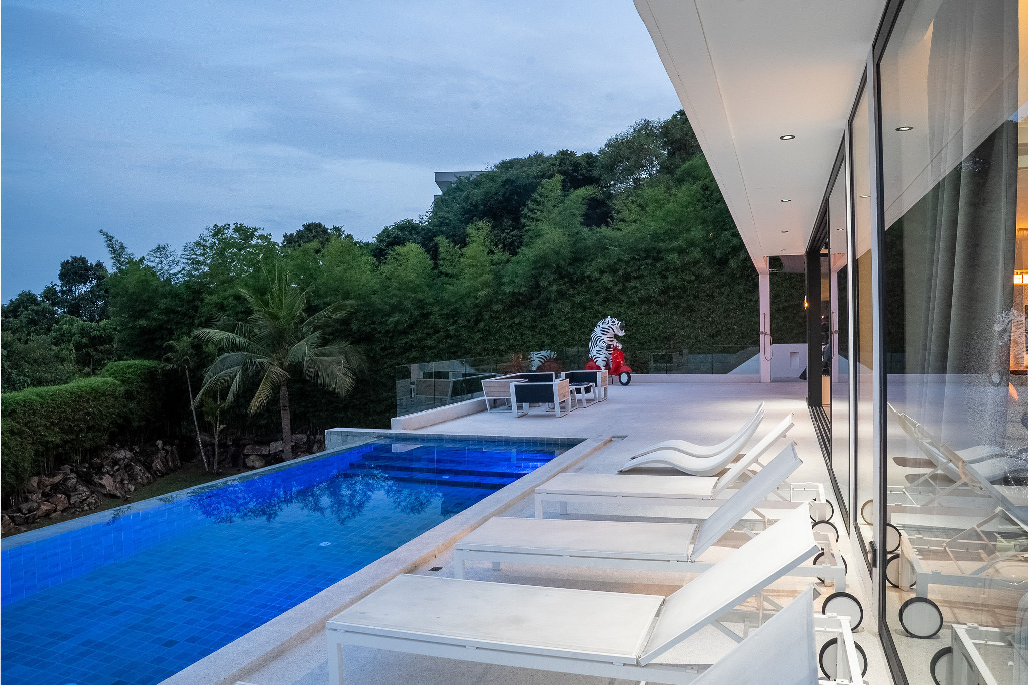 Step into the refined world of Villa Eugénie, a luxurious residence nestled in the prestigious area of Choeng Mon, often referred to as the Beverly Hills of Koh Samui. Located in a secure private estate, this exclusive property seamlessly blends contemporary elegance, privacy, and high-end amenities in a peaceful tropical setting.