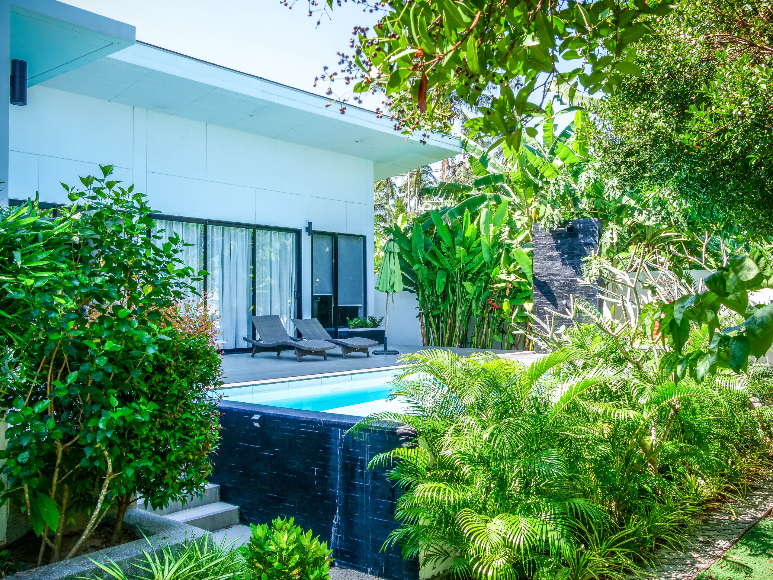 A private pool, quiet place, and calming environment, with a greenish garden view, Villa Moorea offering a delightful tropical escape in the beautiful island of Ko Samui.