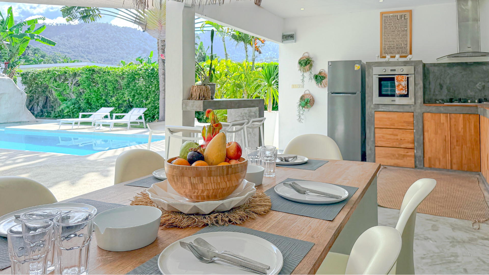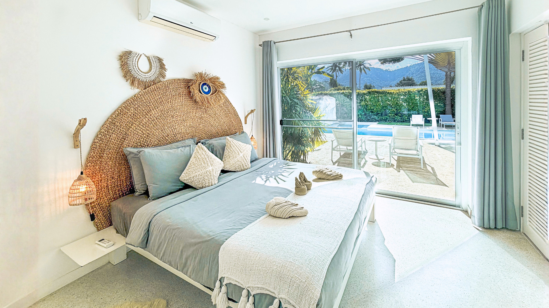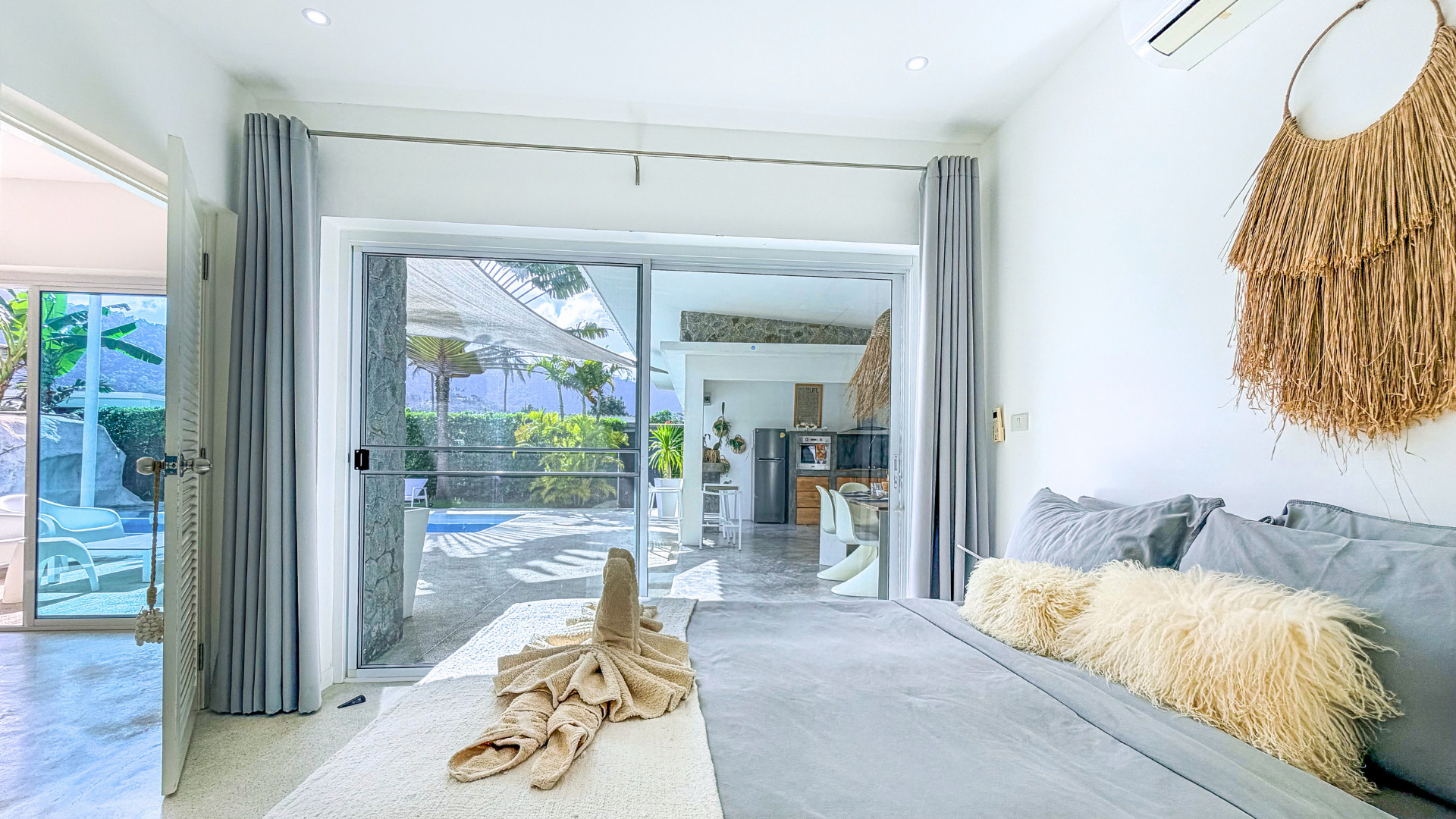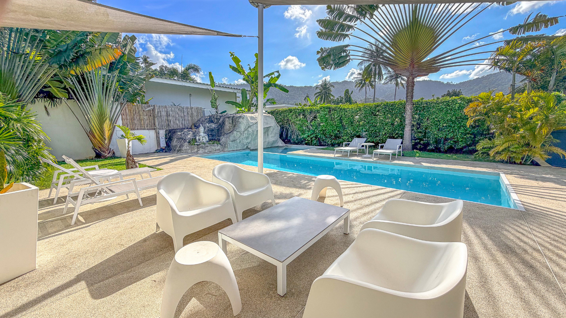The villa in Ko Samui has 3 bedrooms and has capacity for 6 people. The villa is 1,722 ft². The accommodation is equipped with the following items: garden, outdoor furniture, terrace, washing machine, barbecue, iron, internet (Wi-Fi), hair dryer, air-conditioned, private swimming pool, garage in the adjoining building, mosquito net/nets in the bedroom, TV. In the gas open plan kitchen, refrigerator, microwave, oven, freezer, dishes/cutlery, kitchen utensils and kettle are provided.