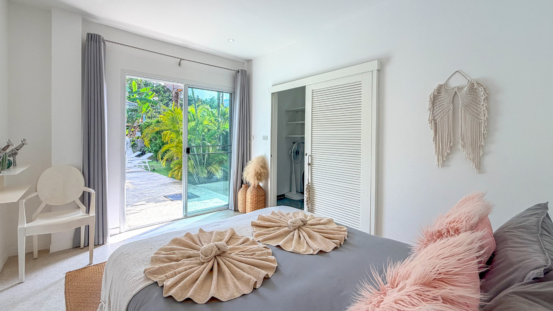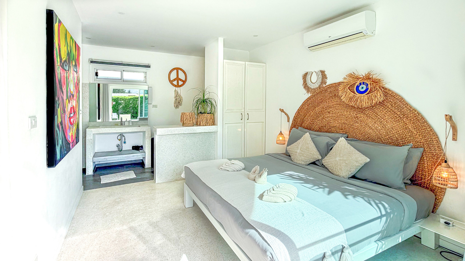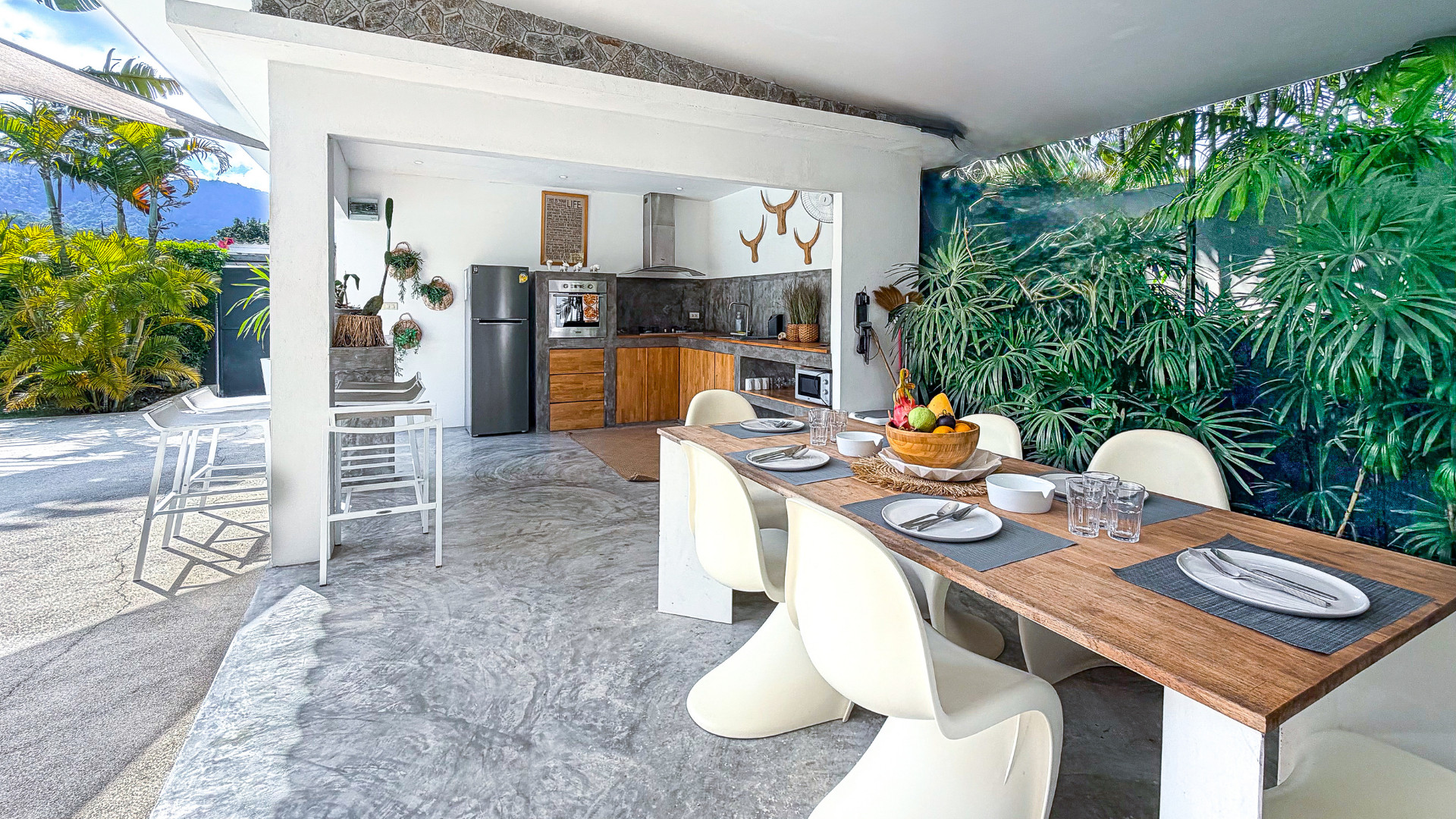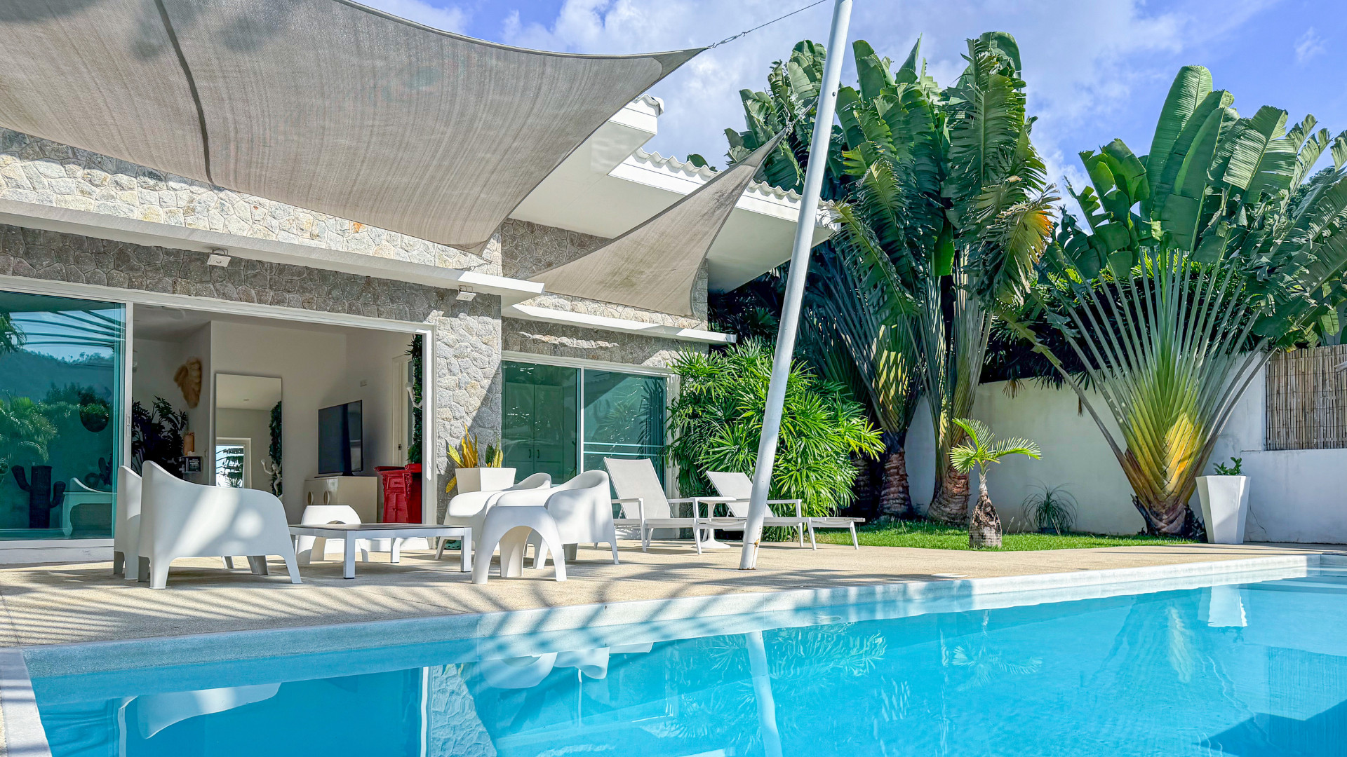 The villa in Ko Samui has 3 bedrooms and has capacity for 6 people. The villa is 1,722 ft². The accommodation is equipped with the following items: garden, outdoor furniture, terrace, washing machine, barbecue, iron, internet (Wi-Fi), hair dryer, air-conditioned, private swimming pool, garage in the adjoining building, mosquito net/nets in the bedroom, TV. In the gas open plan kitchen, refrigerator, microwave, oven, freezer, dishes/cutlery, kitchen utensils and kettle are provided.